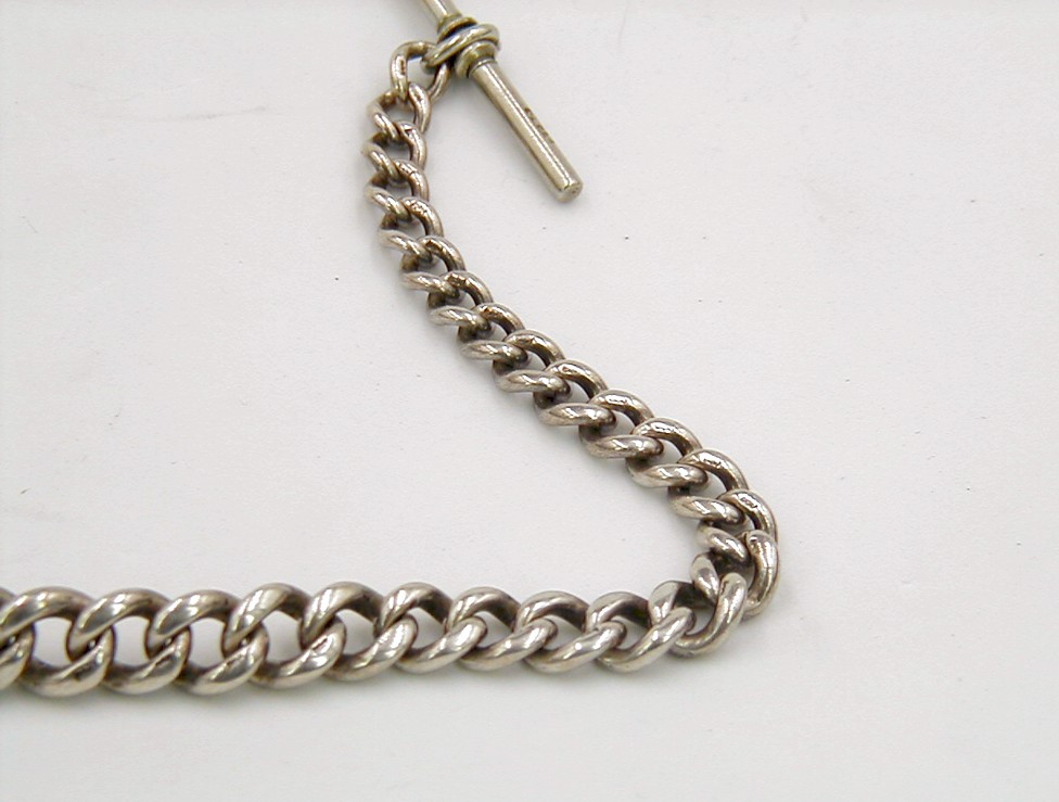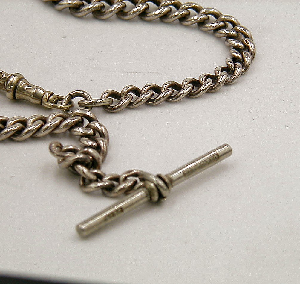 silver hallmarked chain that can hold any size pocket watch with ease. The total