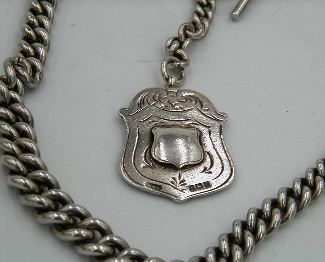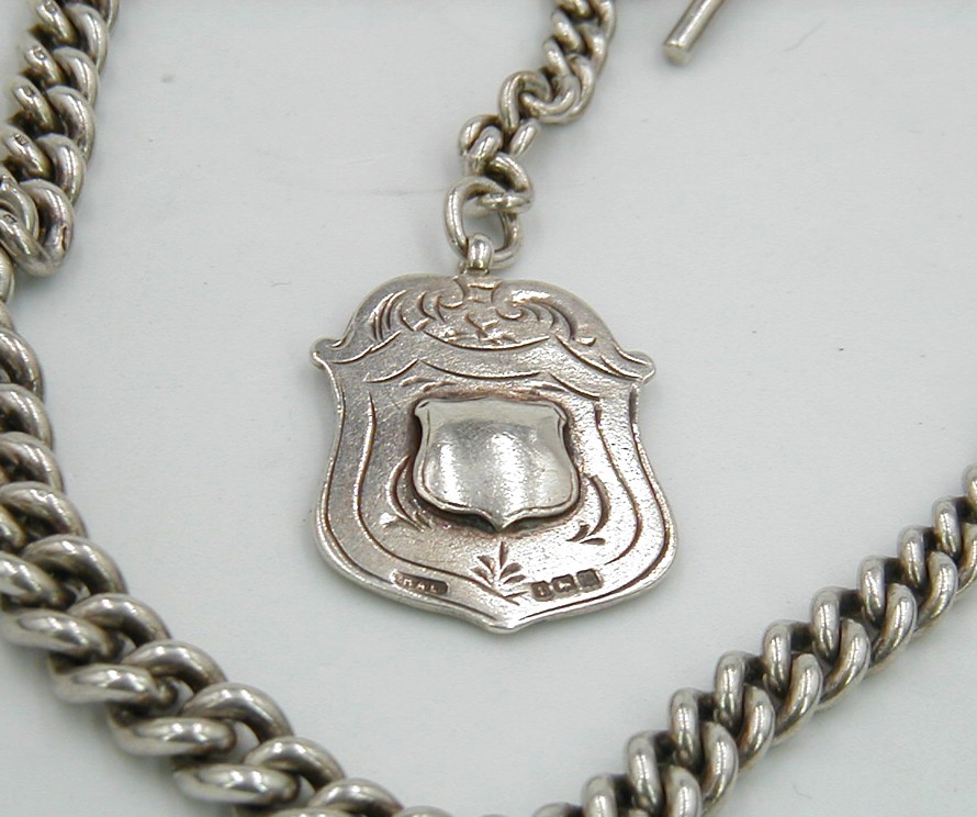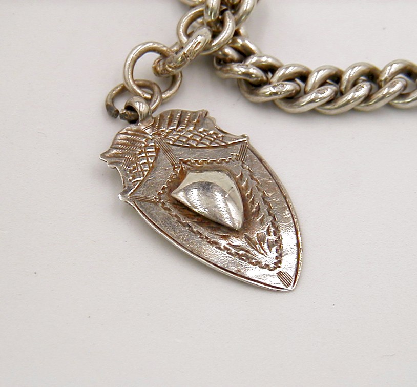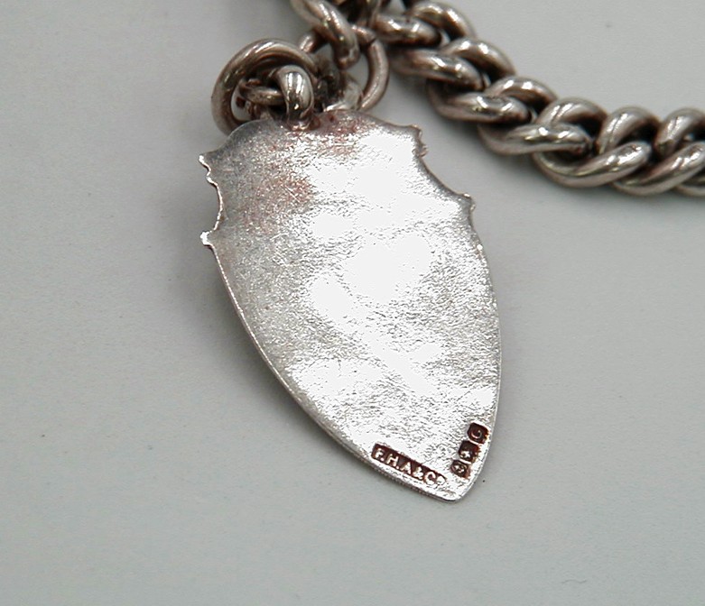 STERLING SILVER HALLMARK LINKED CHAIN AND STERLING SILVER SHIELD 1907