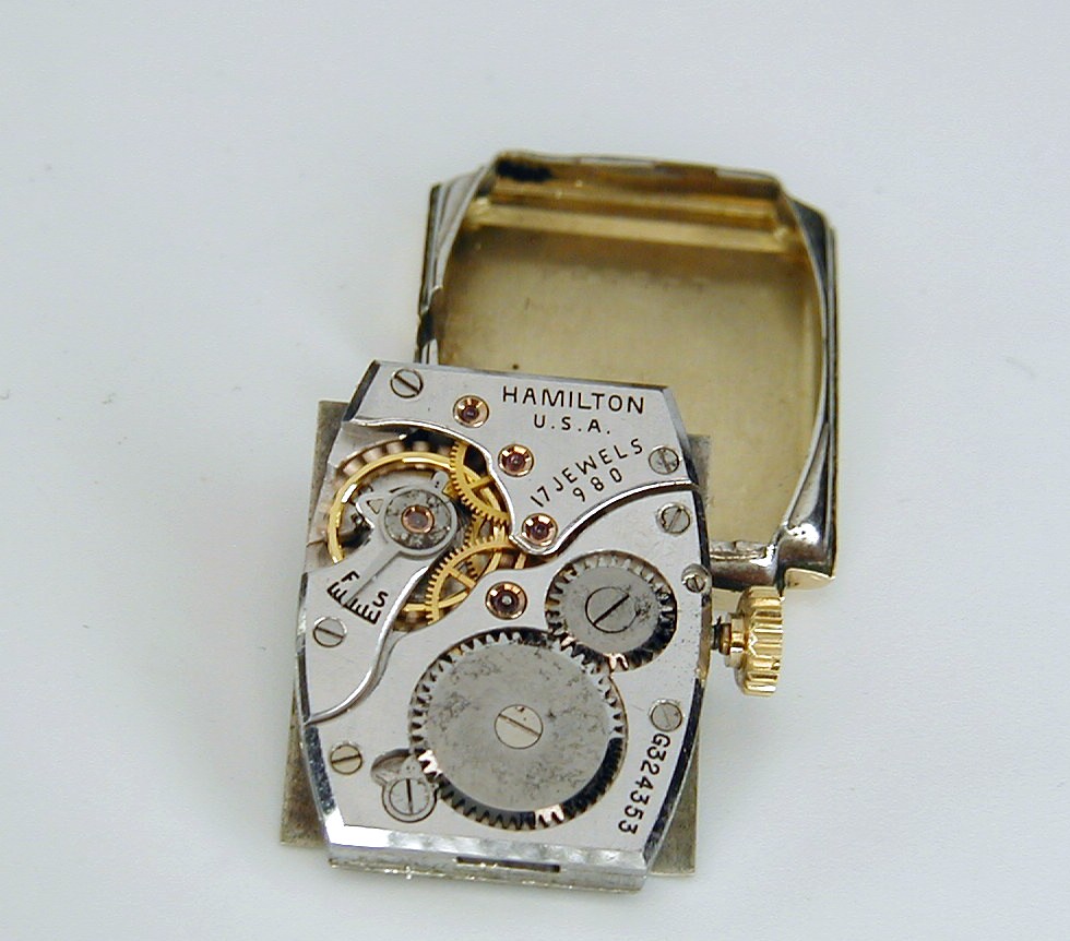 145,584 and reads "Hamilton Watch Co, Lancaster PA 10K gold filled".