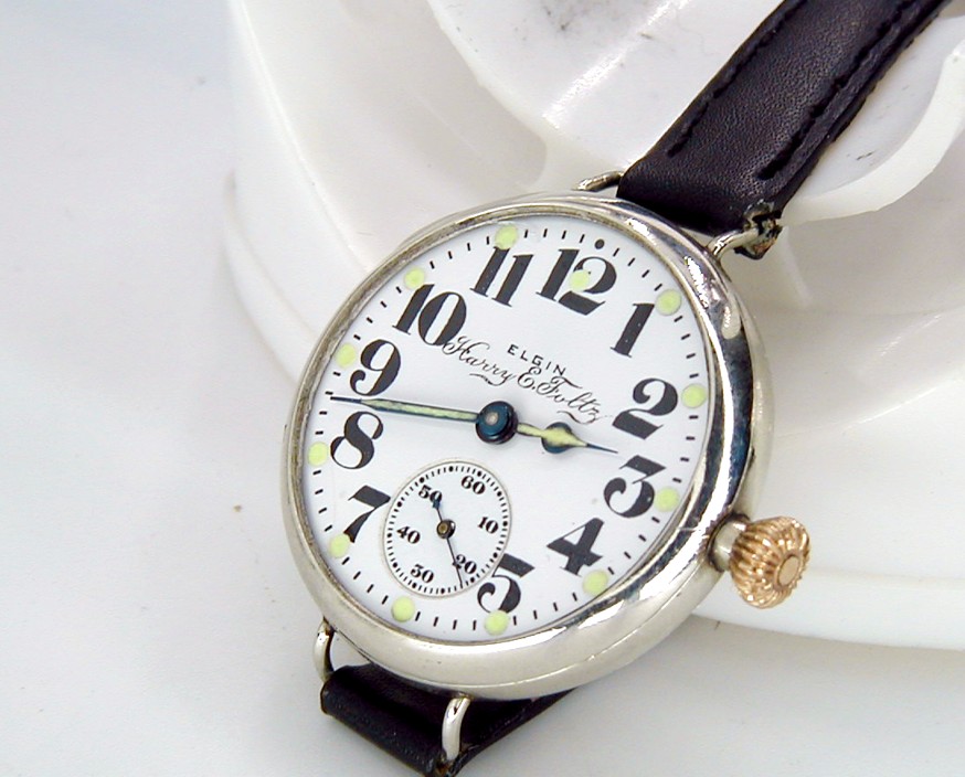 SILVER "ANGLED" CASE AND WELL SERVCIED TRENCH WATCH 1912