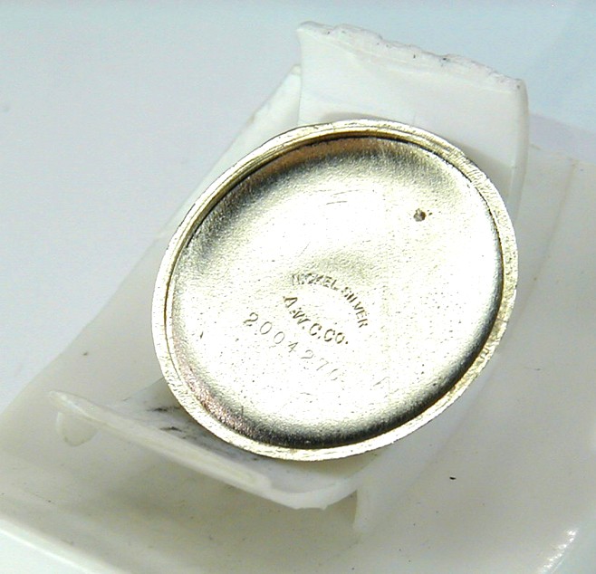on a table. The case is silver nickel and gold flashed in the interior as you