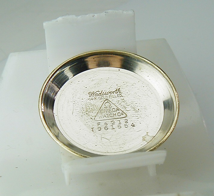 filled top with a snap in stainless steel signed Omega case back. There are no