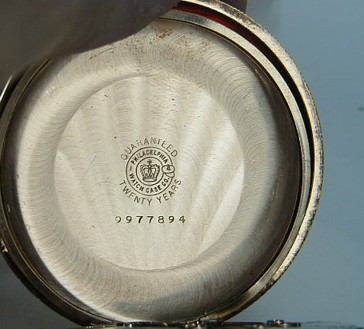 ILLINOIS BUNN SPECIAL AND SIGNED "BUNN SPECIAL" 14K WHITE GOLD FILLED CASE WELL SERVICED 16 SIZE 1920STOCK NUMBER # ILLINOIS30770------- I have for sale a well serviced Bunn Special signed Movement and case! Thi is a 14 karat white gold filled Bunn signed case and it is a 16 size at 53mm across. The case serial number is 8,283,450 and again signed "Wadsworth (case maker) Bunn Special model". There are no personal engravings on this case and the back is with a mirror finish as the scan shows you. The dial is a Montgomery enamel piece with no chips and with a few faint lines and I mean faint. The hands are medium spade railroad hands and the glass crystal is perfect not a flaw. This is a 16 size stem wind and lever set genuine railroad pocket watch and as you can see on the movement it is signed "Illinois Bunn Special". There are 21 clean and inspected jewels to this 16 size movement and notice all jewels are in raised solid gold jewel settings as well the train is made of solid 10 karat gold (train means the wheels less the escapement wheel). On the barrel bridge it reads "adjusted temperature and six positions". The serial number for this Bunn special movement is 3,611,453 which places this made in the USA piece to the year 1920 and as it has been serviced the proper way so expect a railroad timekeeper indeed.850.00 USD |