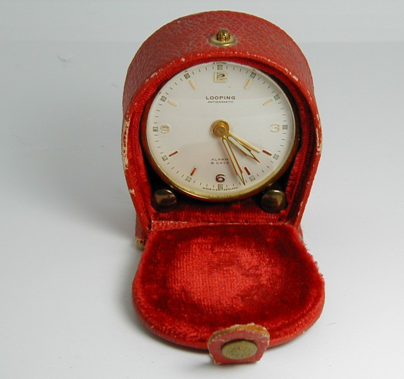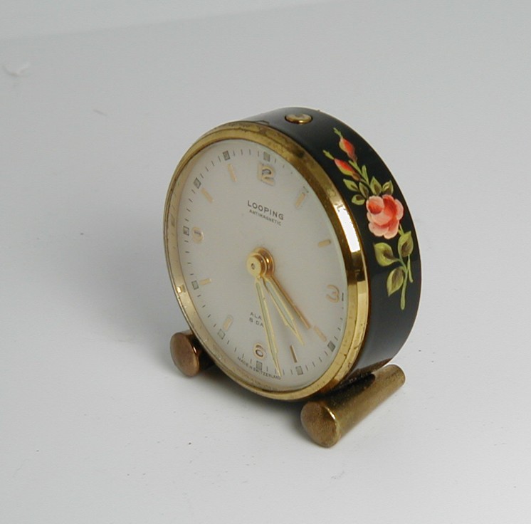 LOOPING SWISS MADE MINIATURE ALARM CLOCK AND FRESHLY