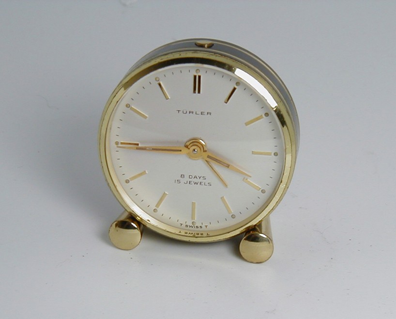 Switzerland" Turler high grade movement miniature alarm clock. This case is
