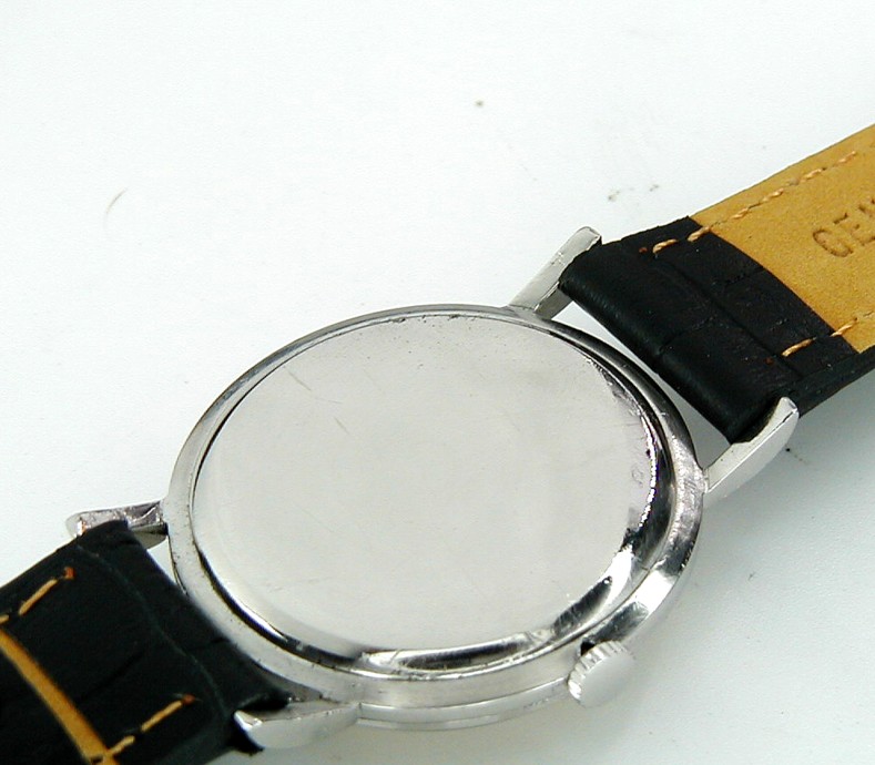 Signed on the inside of the back "Chromium plated". From lug to lug this case is